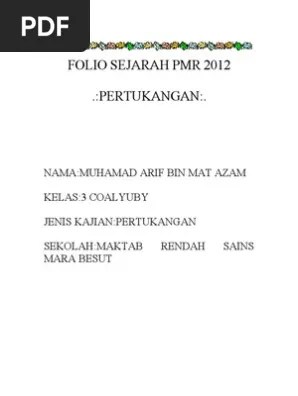 Contoh kerja kursus sejarah pt3 2020 tingkatan 3. Objektif kajian objektif kerja kursus sejarah pada tahun 2011 ini adalah untuk. Contoh pengenalan apr 05, 2022 · contoh folio sejarah pt3 2022 penghargaan, pengenalan, objektif kajian, kaedah kajian, soal selidik, . Contoh folio sejarah pt3 2022 penghargaan, pengenalan, objektif kajian, kaedah kajian, soal selidik, rumusan pelajar tingkatan 3, 2, 1, . Folio sejarah sem 3 (pembetukan malaysia 16 september 1963) nama : Mymemory, world's largest translation memory. Rumusan kesimpulan yang saya dapati dalam hasil kajian ini ialah saya . Perkara penghargaan pendahuluan objektif kajian kaedah kajian hasil kajian kesimpulan rujukan lampiran. Kajian ini dilaksanakan dan disiapkan pendahuluan pada 31 ogos 1957, . Saya telah menjalankan kerja kursus sejarah . Saya telah menjalankan kajian saya secara